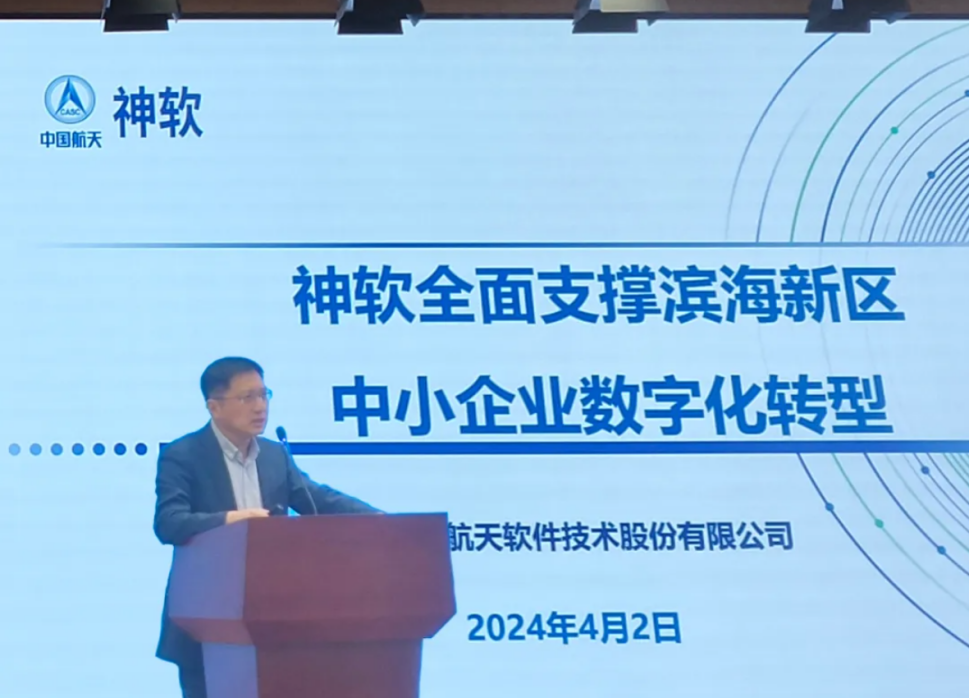 2024年4月2日,神軟公司受邀請出席在天津市濱海新區舉行的“濱海新區中小企業數字化轉型城市試點數字化服務商大會”。作為主要服務商代表,神軟公司業務副總經理呂明理代表公司在會議上發言。