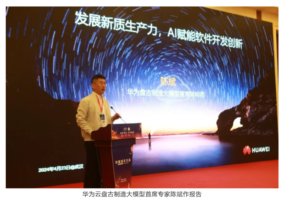 華為云盤古制造大模型首席專家陳斌作題為《發展新質生產力、AI賦能軟件開發創新》的報告。回顧了軟件工程發展歷程,提出當前軟件行業面臨的瓶頸與挑戰以及AI賦能軟件開發,研發作業從代碼為中心走向模型為中心,從以人為主走向智能自主研發的智能化新階段。