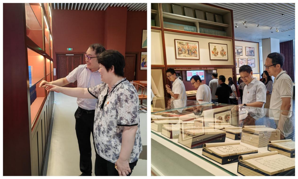 燕山腳下,青山黛瓦。中國國家版本館中央總館依山而上,典雅瑰瑋,彰顯濃厚的中國文化韻味和書卷氣息。版本是中華文明印記、文化符號和文脈信息的載體。國家版本館以中國歷史發(fā)展、中華文明演進為主線,奠定“1個主題展覽+2個基本陳列+4個專題展覽”的格局。在講解員的引導(dǎo)下,黨員們先后參觀了國家版本館文興樓、文華堂、文瀚閣、蘭臺洞庫,觀看了“真理之光—馬克思主義中國化時代化經(jīng)典版本展”、“斯文在茲—中華古代文明版本展”、“見證偉業(yè)——中華民族復(fù)興版本展”等專題展覽,通過各類經(jīng)典版本,充分領(lǐng)略了中華文化的底蘊之深、文脈之盛,見證了中華民族偉大復(fù)興的時代偉業(yè)。