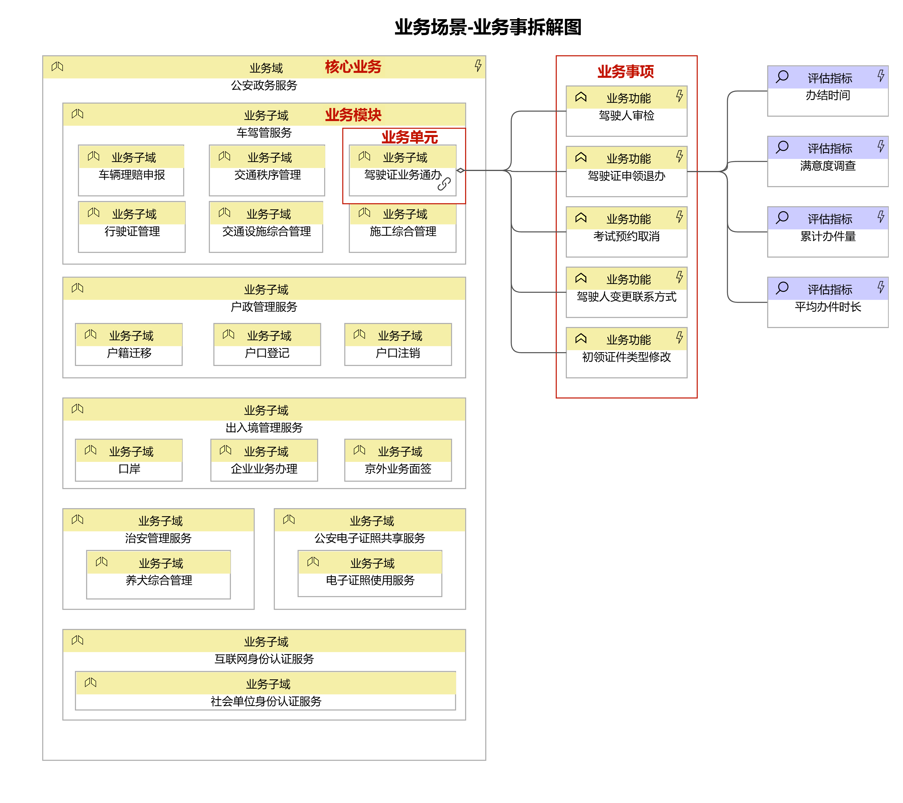 至此步驟即完成了多跨場景的拆解過程,是“V”模型工作法的下行部分。這與TOGAF框架中業務能力、業務流程和業務活動含義相契合。