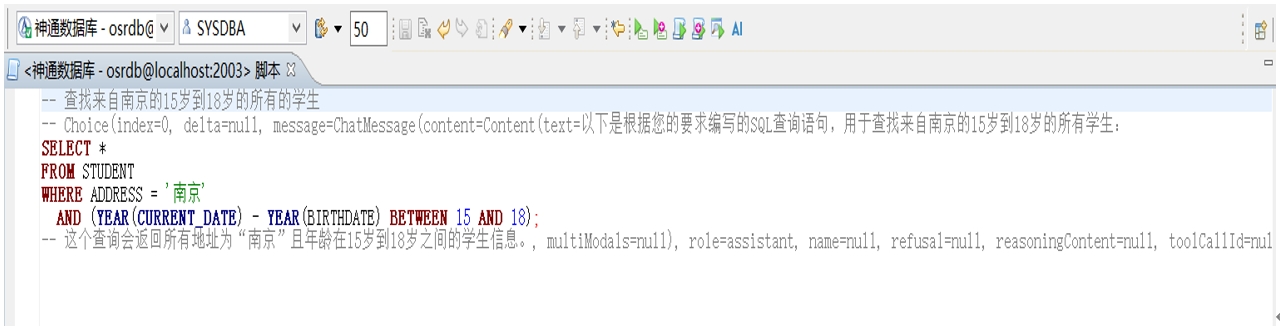 為進(jìn)一步賦能企業(yè)高效利用數(shù)據(jù)資源,神通數(shù)據(jù)庫(kù)的DBStudio工具中引入了DeepSeek能力改寫了原有的AI智能補(bǔ)全功能,使用者能夠以對(duì)話的便捷方式,將自然語(yǔ)言無(wú)縫轉(zhuǎn)化為SQL及復(fù)雜查詢語(yǔ)句,這一功能徹底扭轉(zhuǎn)了以往數(shù)據(jù)庫(kù)交互依賴專業(yè)編碼的局面,升級(jí)為“全民對(duì)話”的模式,大大降低了企業(yè)數(shù)據(jù)驅(qū)動(dòng)能力的技術(shù)門檻。